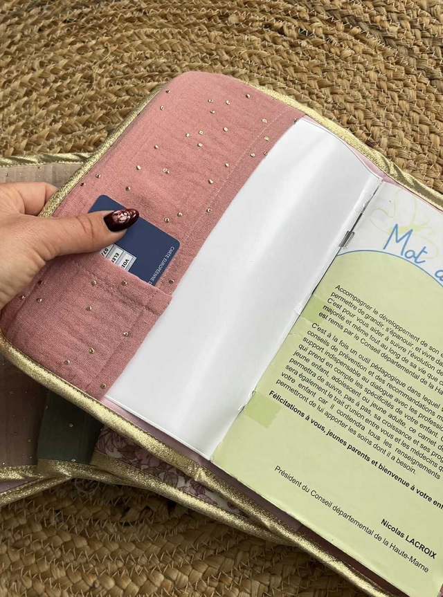 Protège carnet de santé personnalisé – Double gaze matelassée dorée